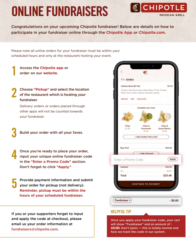 Chipotle fundraiser on Wednesday, October 13!